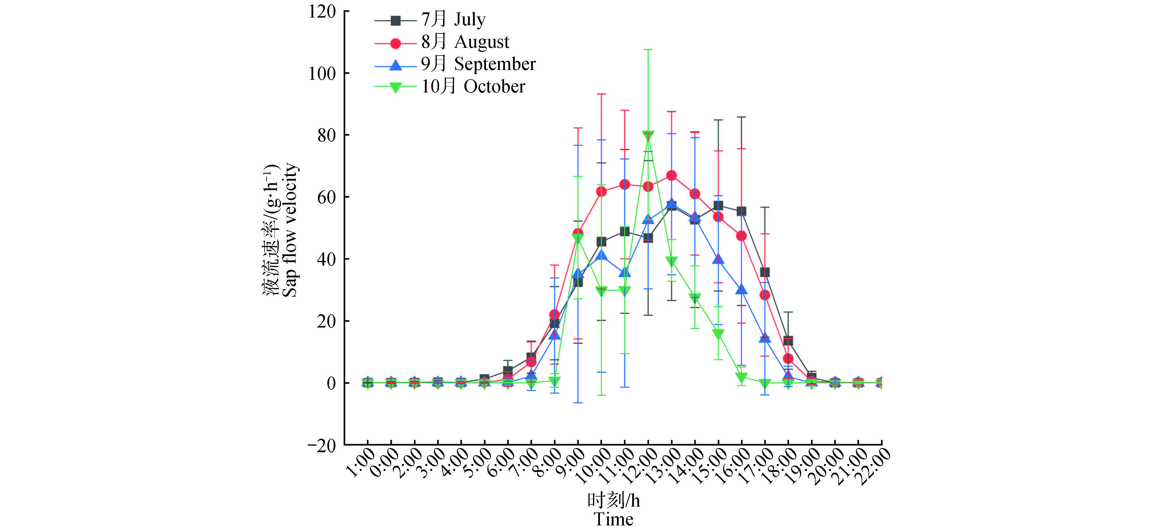 水分是限制科尔沁沙地南缘植物生长与存活的主要限制因子,植物的茎干液流反映树木生理活动状态,是估算单株耗水量的重要基础。开展固沙灌木胡枝子液流速率及对环境因子响应机制研究,为当地胡枝子用水策略及管理提供科学依据和参考。结果表明,观测期间胡枝子液流平均速率为446.38 g/d。胡枝子液流日变化规律呈现双峰“午休”现象,并且午休时间节点随月份的增加(7—10月)提前了1 h。夜间液流平均速率为0.045 g/h,对日总液流贡献仅为0.077%。胡枝子茎干液流速率与太阳总辐射、气温、风速、土壤温度、水汽压亏缺呈正相关关系,与空气相对湿度、降雨量呈负相关关系。以上环境因子中水汽压亏缺对胡枝子液流影响最大贡献率高达89.78%,并且二者关系存在明显的阈值效应,水汽压亏缺-液流速率关系曲线拐点为0.719 kPa,液流速率阈值上限为111.85 g/h。通过分析沙地胡枝子蒸腾耗水变化特征及其对环境因子响应机制,有助于理解气候变化下沙地胡枝子生态水文过程,可为研究区林分结构优化、林分资源管理提供科学的理论依据。