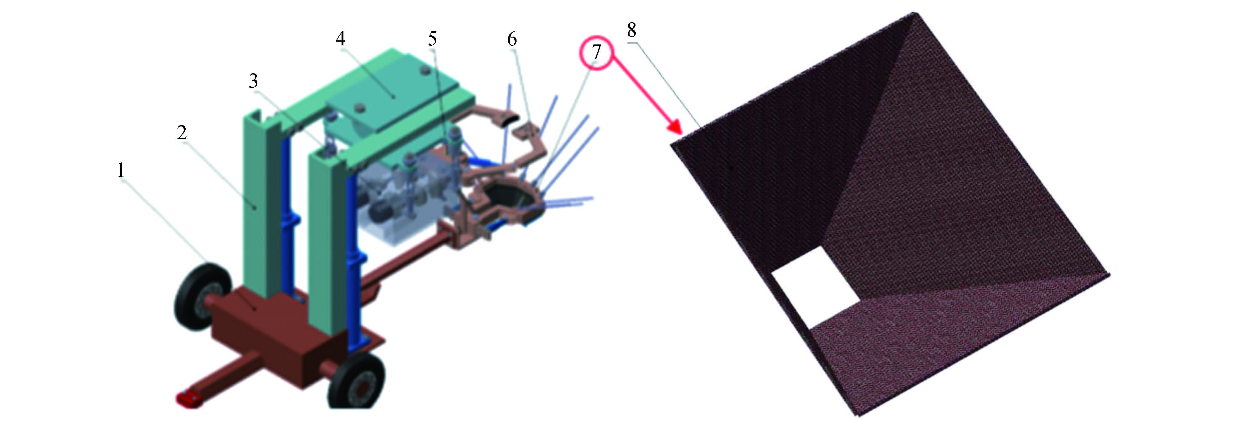 针对矿山生态修复面临的地形复杂、土壤贫瘠、效率低下及专用装备缺乏等问题,需要开发一种高效、低成本、适于机械化作业的矿山植被恢复的新方法,以克服传统技术的局限性。为此,提出一种创新型矿区植被恢复策略,该策略的装置由育种绳和铺设装置2个模块组成,育种绳可以预先在工厂进行标准化生产,然后通过铺设装置将育种绳铺设在植被修补处。通过植树效率和经济效益评估其植树恢复效果。研究表明,新方法种植效率达200~260 m²/h,综合成本约为50元/m²。在治理矿区时,新方法耗时比挂网喷播等技术耗时少,陡坡大的工况下优势更显著。动力学仿真验证,驱动轴工作扭矩小于12.2 kN·m,满足强度设计要求,液压系统最大载荷小于25 kN且留有充足裕度,表明装备核心部件的可靠性。该育种绳技术与配套装备,为矿山生态修复提供可量化、可推广的高效解决方案,该方案显著提升了植树效率及经济效益,对推动矿山绿化从人工模式向机械化、规模化转型具有重要意义。