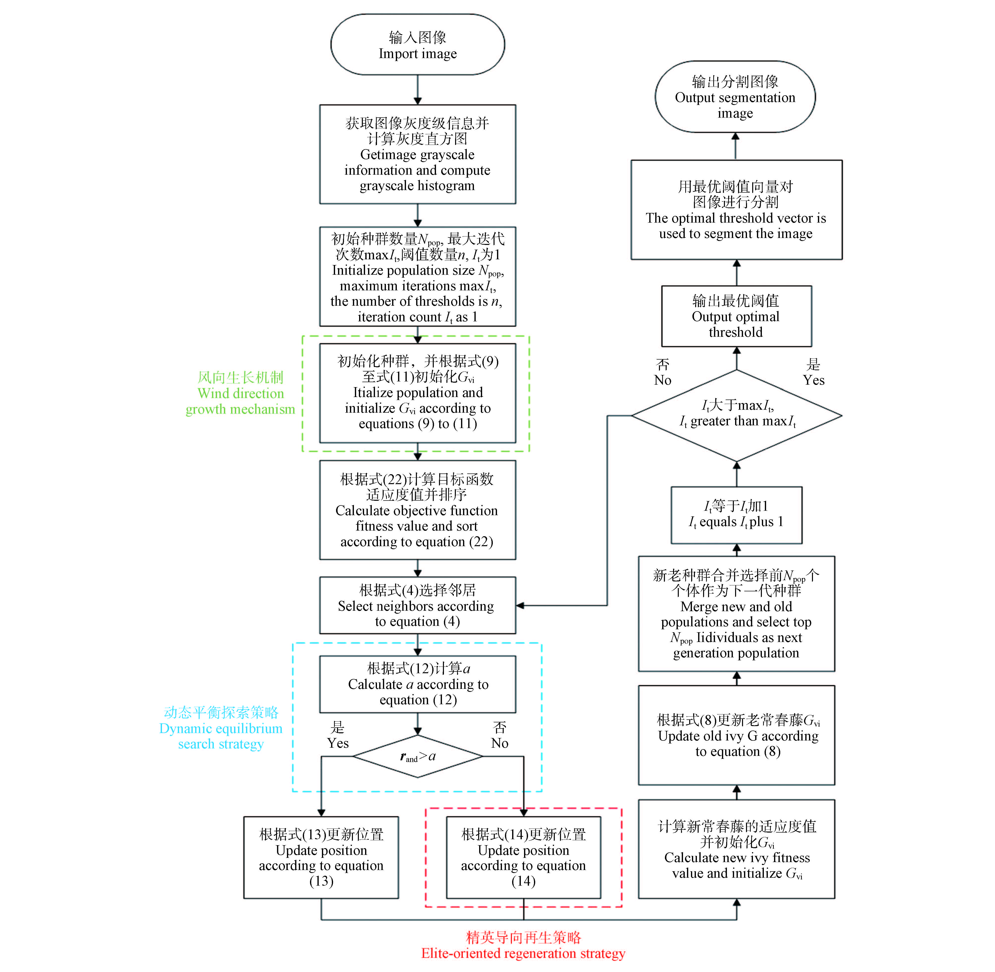 针对木材加工自动化生产中因表面缺陷边缘模糊及纹理干扰导致的图像分割精度不足问题,提出一种改进的常春藤优化算法(improved ivy algorithm,IIVY)用于木材缺陷图像的多阈值分割。首先,通过风向生长机制增强种群多样性,并设计非线性动态平衡因子以动态协调全局勘探与局部开发能力;其次,引入精英导向再生策略提升算法跳出局部最优的能力;然后,基于对称交叉熵设计适应度函数,利用IIVY对木材缺陷图像进行分割,并与4种经典算法(灰狼优化算法(grey wolf optimizer,GWO)、鲸鱼优化算法(whale optimization algorithm,WOA)、麻雀搜索算法(sparrow search algorithm,SSA)、沙猫群优化算法(sand cat swarm optimization,SCSO))对比分析,评价指标包括最优适应度值、峰值信噪比、特征相似度和主观视觉评价。结果表明,IIVY适应度收敛曲线明显优于对比算法;在峰值信噪比和特征相似度指标上,IIVY取得最优值的试验组数分别占总试验组数的83.33%和91.67%;IIVY在缺陷区域边缘的分割中更加准确,分割结果完整保留木材纹理细节。IIVY算法能够准确分割木材表面缺陷,保留木材表面的纹理特征,为木材缺陷检测提供可靠技术支撑。